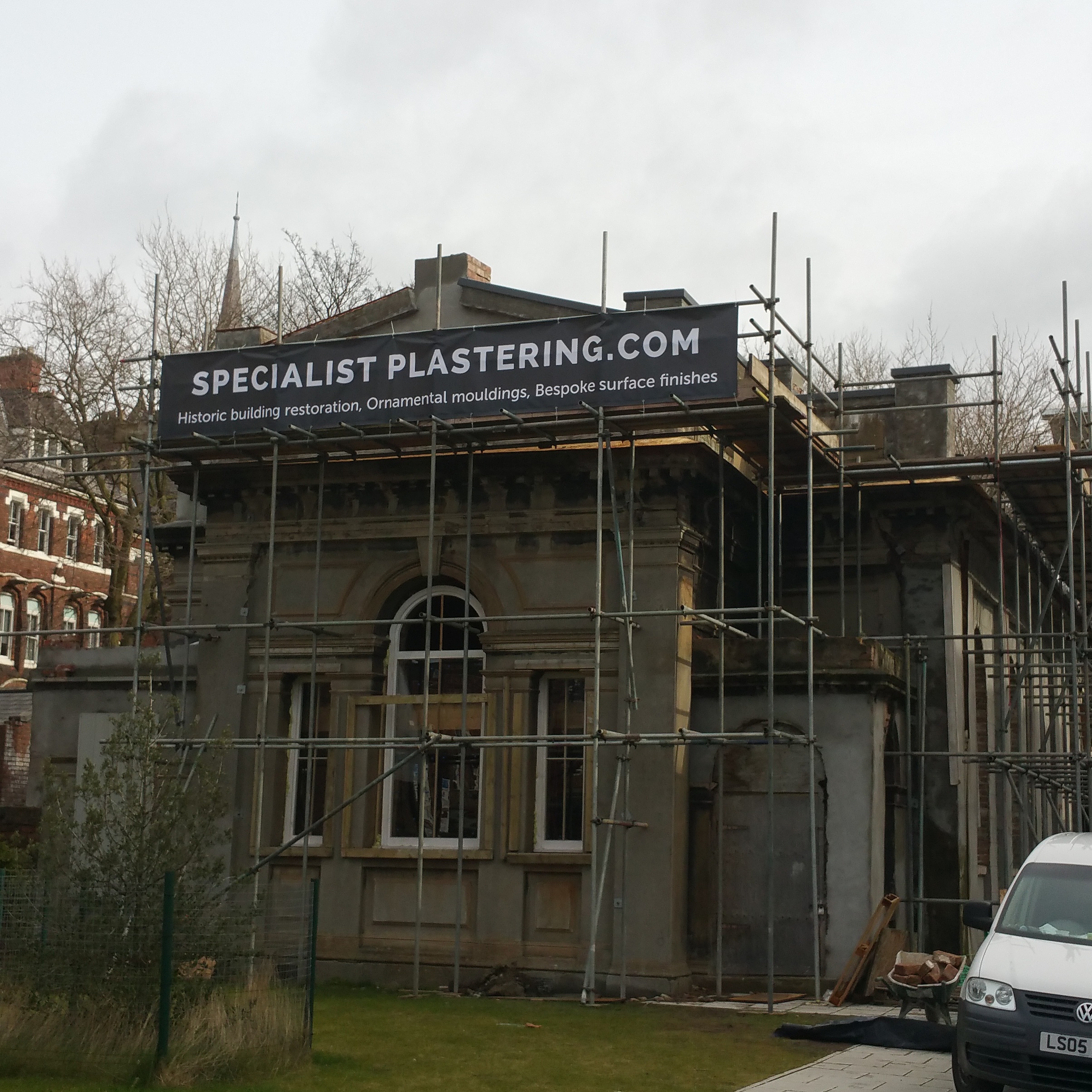 Most of the bench run pieces are now finished and slowly curing so as the weather begins to warm up we have been able to begin setting out and running the first of the in situ mouldings.