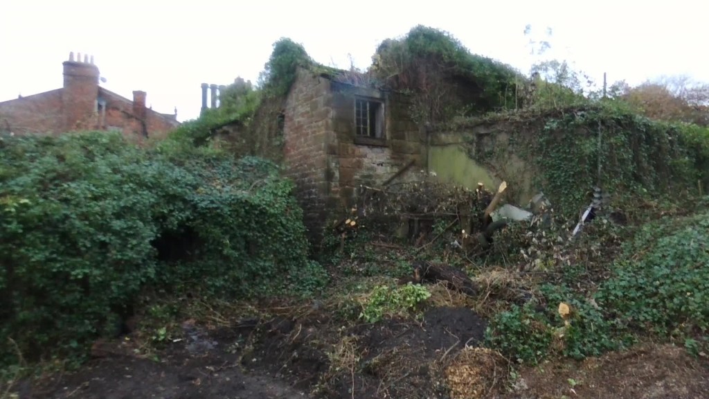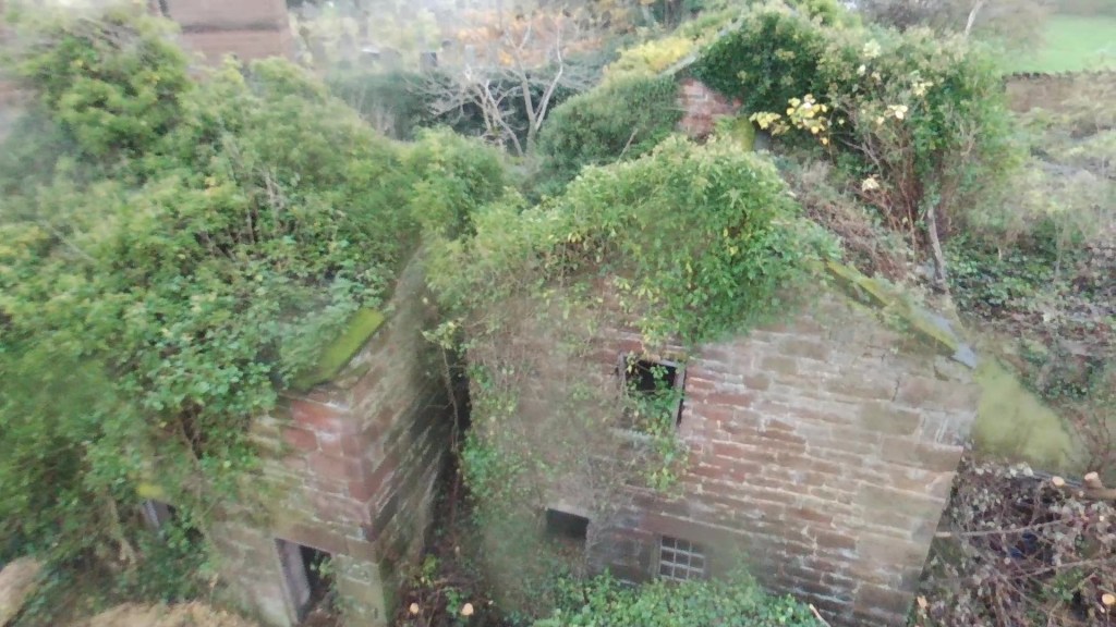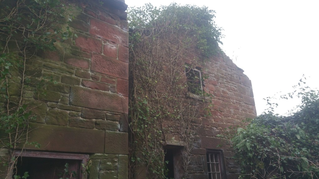 Several trees had grown from inside the building and ivy had been left to grow completely covering parts of the structure.