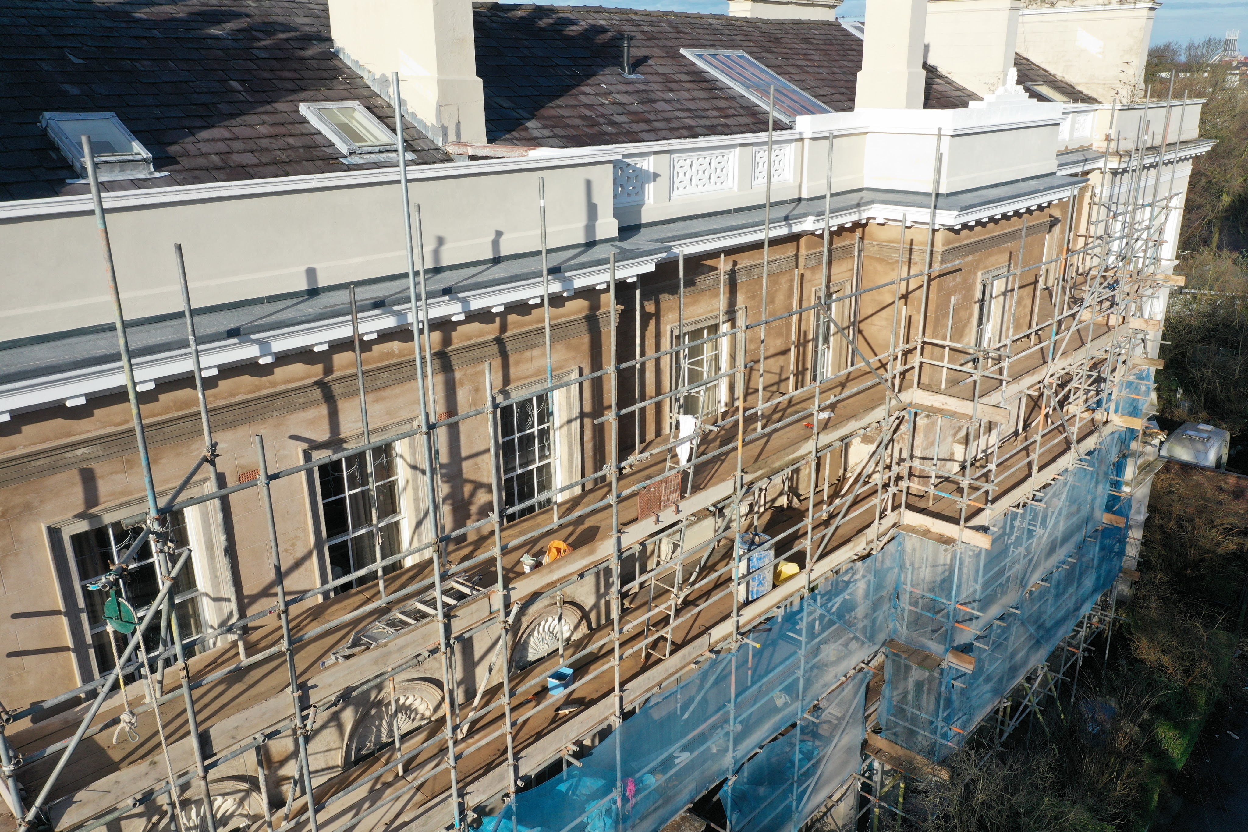 Removing the modern paint coatings and cement revealed a lot of original detail and we are able to repair the mouldings and re surface the plain faced ashlar using tradition materials to match exactly with the original.